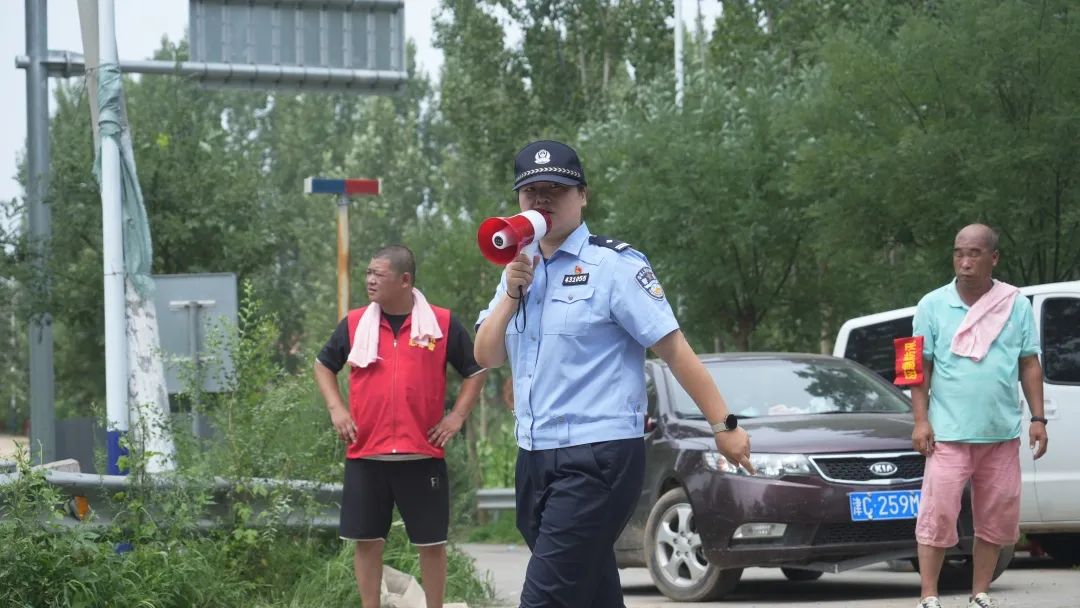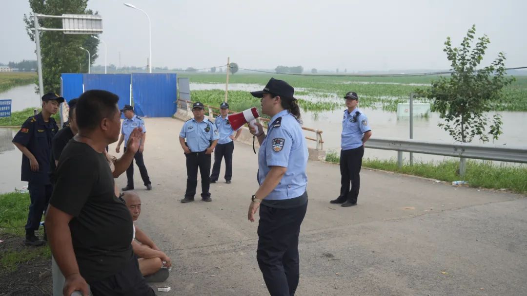 8月1日,一夜无眠后的第一个清晨,祖旭匆匆洗了把脸就出发了。此时的黄花店镇泛区内,已经没有一户居民在家了,但祖旭还是担心会有遗漏,她又开着警车去路堤和村里巡逻,一方面时刻关注水位情况,避免发生危险,另一方面看看村民是否撤离到位,防止出现回流,一直到晚上要求所有人员全部撤离,祖旭才离开村子。