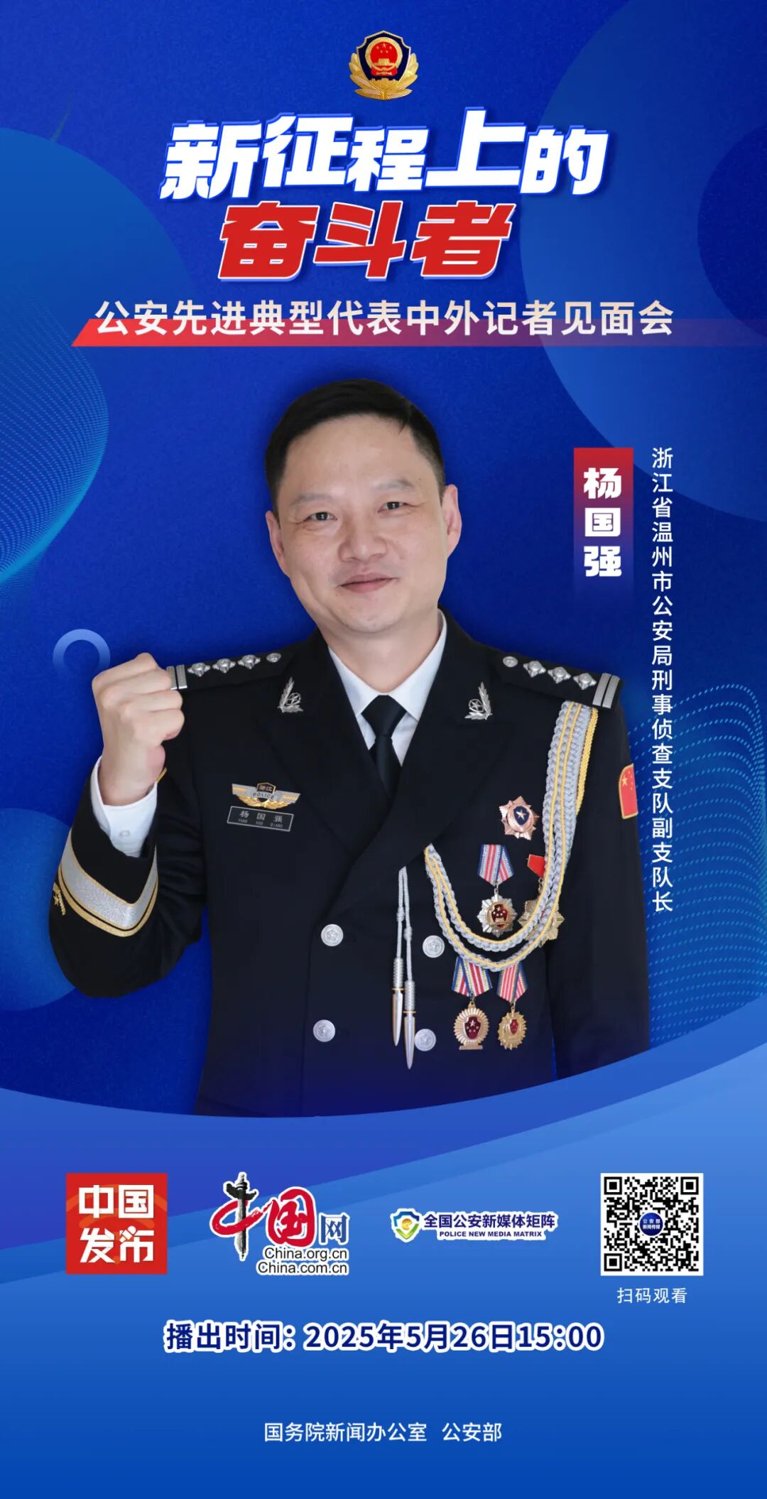 国务院新闻办公室将于5月26日15时举行“新征程上的奋斗者”中外记者见面会,邀请公安系统先进典型代表出席并与中外记者见面交流。届时,国务院新闻办公室网站、中国网将进行图文直播,“中国发布”App、中国网和全国公安新媒体矩阵多家平台将进行视频直播。