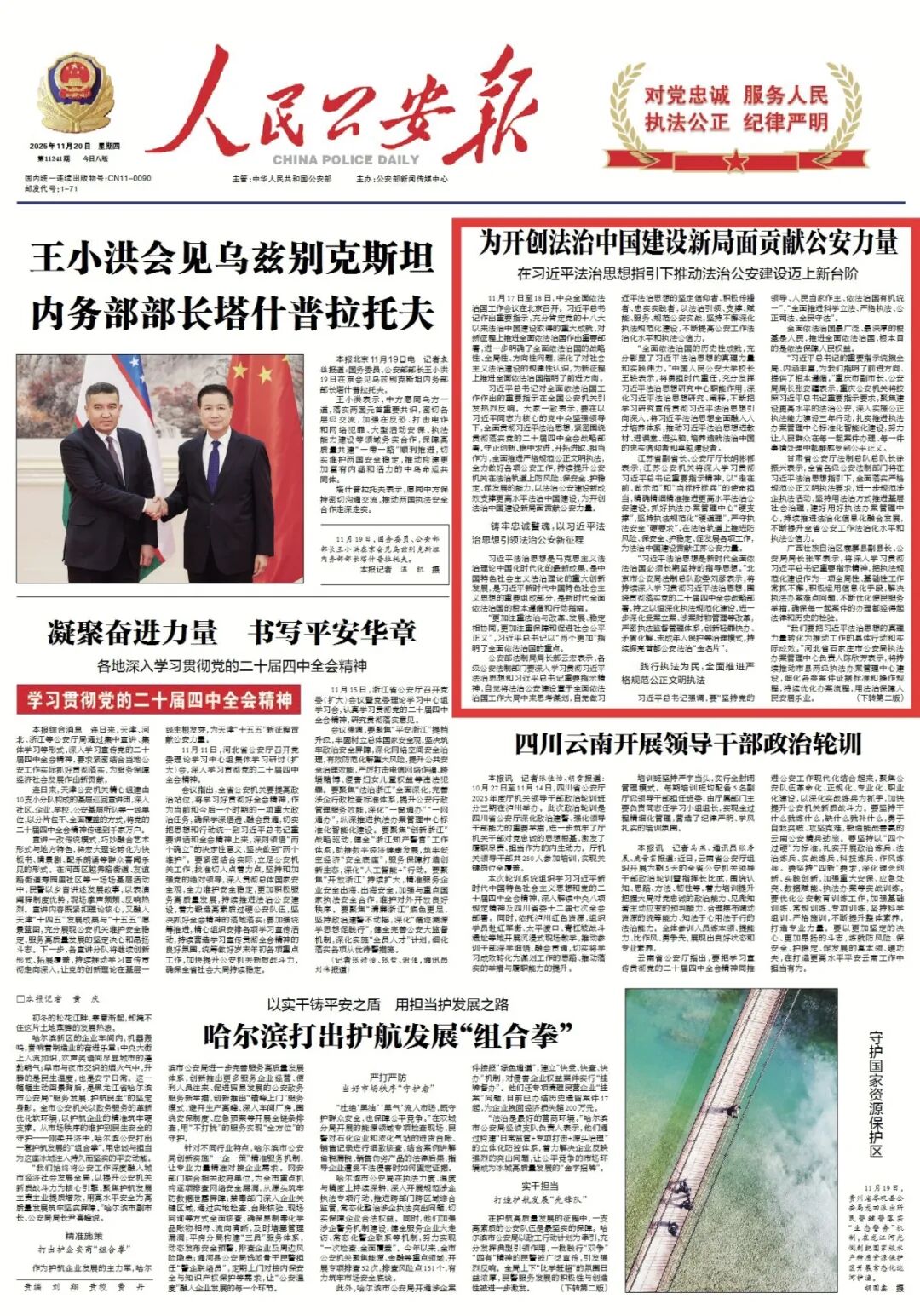 “习近平法治思想是新时代全面依法治国必须长期坚持的指导思想。”北京市公安局法制总队政委刘彦表示,将持续深入学习贯彻习近平法治思想,围绕贯彻落实党的二十届四中全会战略部署,持之以恒深化执法规范化建设,进一步深化受案立案、涉案财物管理等改革,严密执法监督管理体系,创新轻罪快办、矛盾化解、未成年人保护等治理模式,持续擦亮首都公安法治“金名片”。