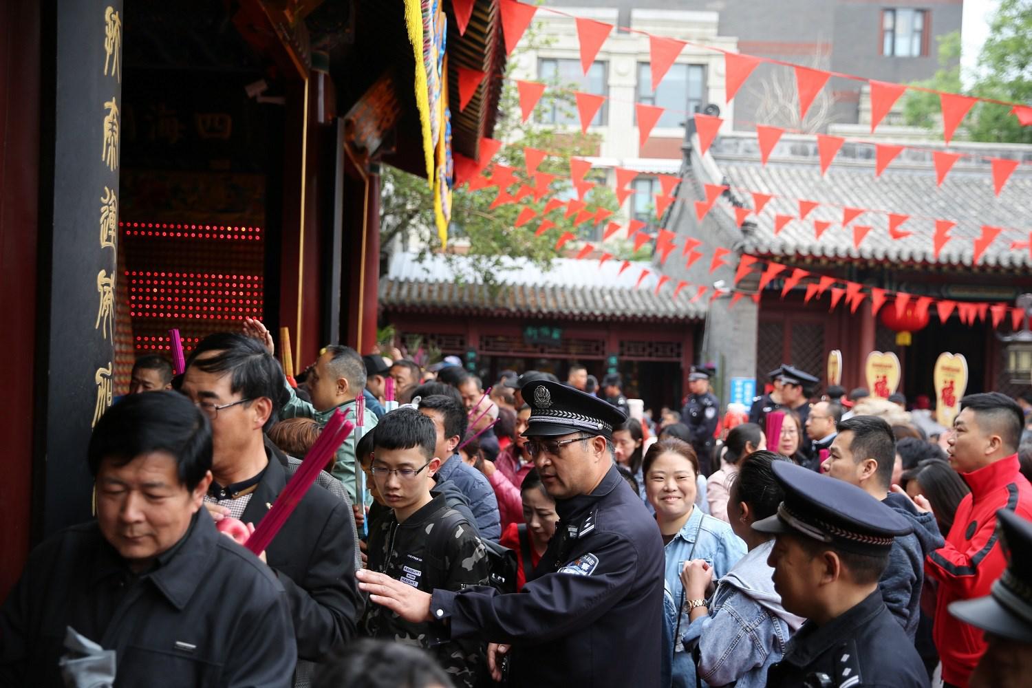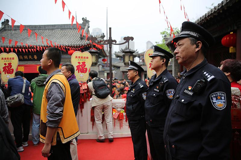 为进一步弘扬妈祖文化,保护非物质文化遗产,传承中华美德,凝聚民族精神,传播津域民俗,4月27日,天津天后宫举行妈祖诞辰1059周年庆典,有着悠久历史的天后诞辰祭拜活动在正殿站台隆重举行。作为天津市“海峡两岸交流基地”的天后宫的妈祖诞辰庆典活动已成为天津民俗的文化盛事,港澳台胞、社会各界妈祖信众纷纷前来“同谒妈祖,共佑平安”。公安南开分局高度重视祭祀庆典系列活动安保工作,精心组织、周密部署,圆满完成活动安保任务。