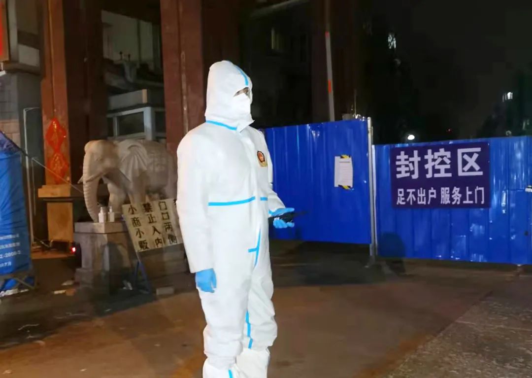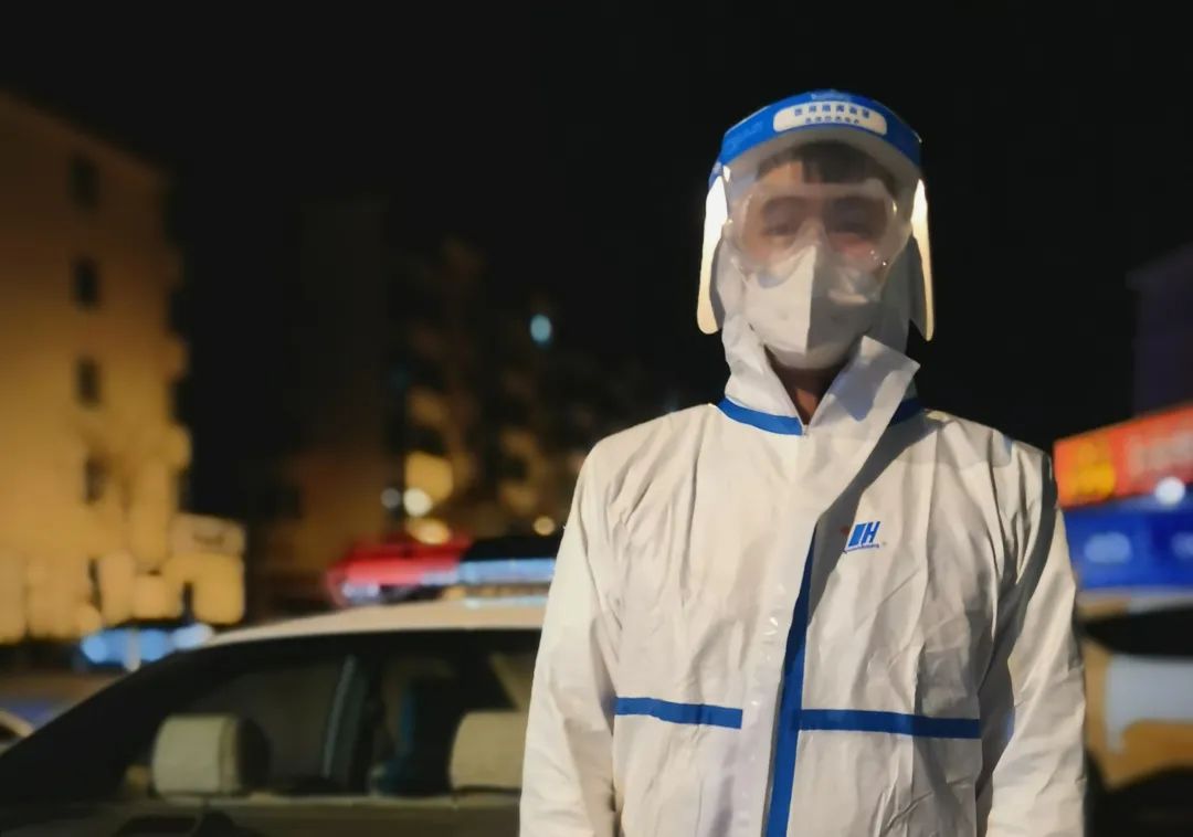 到达新的岗位后,马子龙快速完成了从国门“藏蓝”到抗疫“大白”的转变。维持现场秩序、帮助居民登记、讲解防护知识……这个身高1米9的小伙子,穿着厚重的防护服,马不停蹄地在值守社区里奔走。为了节约防护服,他和同事们甚至一天不喝水以少去不去厕所。十几个小时下来,在防护服里经历了“冰火两重天”。“早晚天气冷,但出汗后闷在防护服里就会很热。”马子龙嘴上说着,手里一刻不停地搬运着物资,“虽然冷热交替的滋味不好受,但我是民警,有现场处置经验,就应该多干一点。”