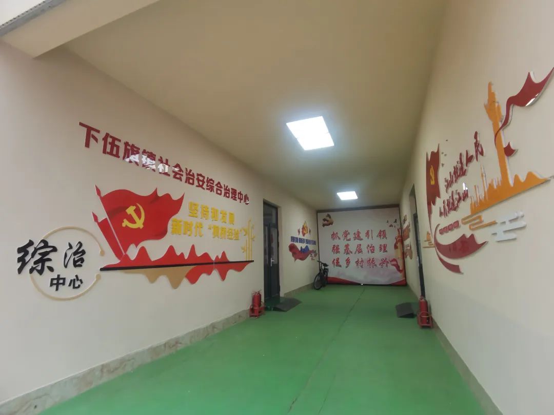 下伍旗镇综治中心位于下伍旗镇政府院内,镇政府南院整排平房作为综治中心,设置群众接待区、多元化解区、特色婚调室3个主要功能区域,设有独立的群众接待场所,设置综合受理、法律服务、信访接待、网格服务、警务服务等窗口。设有一大一小两个调解室,与办公区域独立。实现信访办、综治中心、网格中心、公共安全办、妇联、执法队、微型消防站、派出所、司法所等部门常驻,党建办、党群服务中心、退役军人、农办、民政、城建、企业服务中心、公共管理办、村居办等部门轮驻。整合乡贤10人、律师、政府法律顾问、公职律师以及特色调解室“武清区婚姻家庭调委会数智家和调解工作室”等共同做好矛盾化解工作。