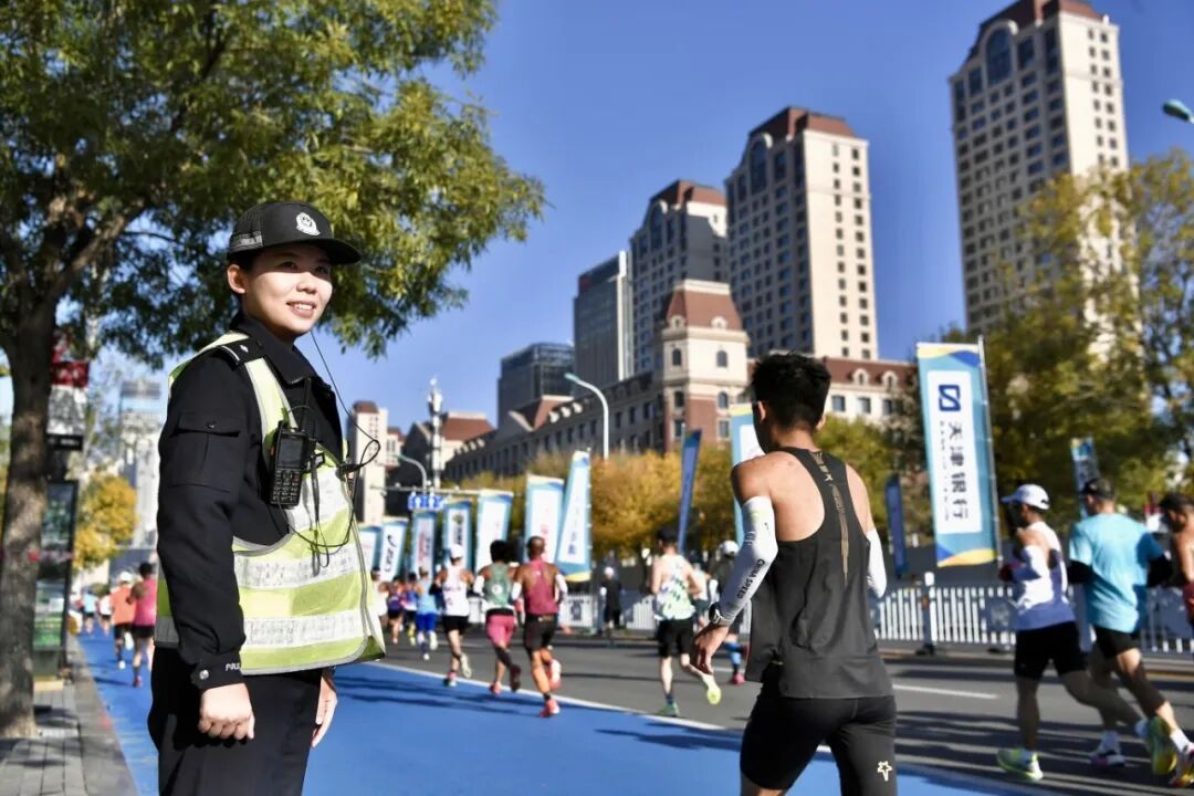 “前方500米人流量较大,民警做好分流疏导。”在和平区赛道段,警用无人机实时开展巡查,帮助民警及时了解、处置现场突发情况。