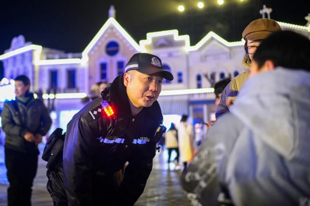 这样的暖心场景在假期里不断重现。“警察同志,请问瓷房子往哪边走呀?带着老人孩子,怕走岔了。”滨江道步行街,几位外地游客向民警询问。正在值守的民警立刻上前,笑着指引路线:“您顺着新华路,走到赤峰道,就能看见瓷房子了,那附近还有不少名人故居,可以带着老人孩子转一转,有事儿随时给我们打电话。”