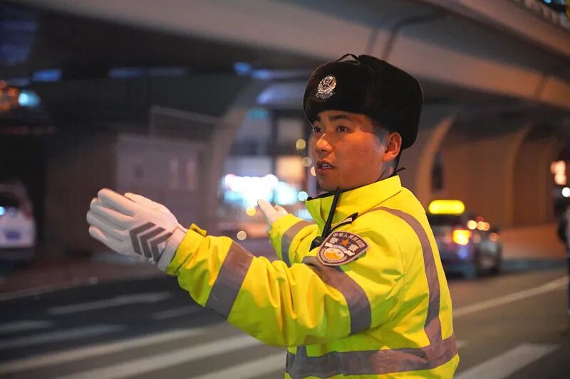 元旦跨年夜,为应对客流高峰,许龙与战友们在天津站后广场周边重点路段设置拉链式护栏、拒马等交通设施,科学规划疏导点位。从下午15点上岗,到次日凌晨2点撤岗,近12个小时的坚守里,他和队员们顶寒风、疏车流、帮群众,为欢乐海洋锚定下平安无恙的方向。