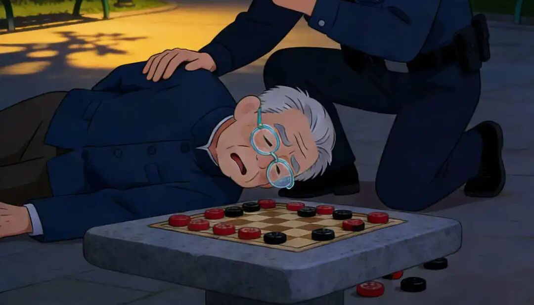 近日晚上十点多,和平区某居民楼一楼的象棋摊旁,几位老人在灯下聚精会神地切磋棋艺。突然,一位正在旁观的七旬老人身子一软,直直倒在地上。