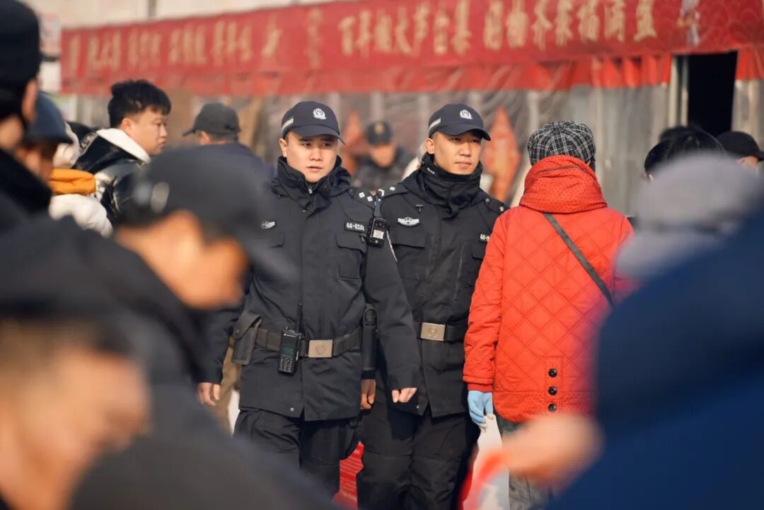 宁河芦台大集,人从众叕的热闹里,一抹藏蓝身影格外亮眼。公安宁河分局的民警们在这里摆起了特别的“摊位”——安全宣防台,组织80名警力开展动态巡防,切实提高见警率与管事率,在密集人流中排查隐患,守护平安。