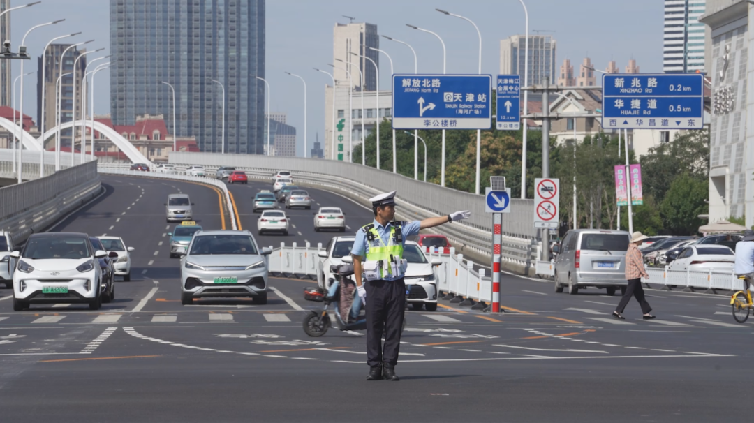 许龙负责的警区所辖天津站这一城市窗口,平日里游客络绎不绝。上海合作组织天津峰会期间,他值守的新开路与华昌道交口,作为连接李公楼立交桥通往和平区的关键节点,成为天津站后广场区域车流量最大的岗位。连续十余天的保障任务中,他从晨光初现忙碌至翌日凌晨。“承载着全市人民的殷切期望与厚重托付,我必将全身心保障完成好交通安保任务,同时继续守护好警区道路交通安畅,绝不辜负这份沉甸甸的信任!”这是早在峰会举办的10个月之前,许龙接受交通安保任务后立下的军令状。